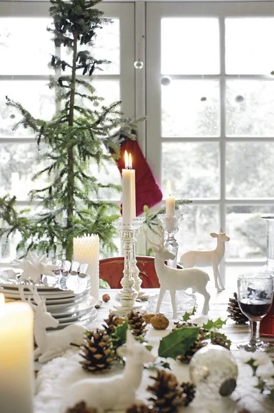 I admired the simplistic aesthetic: lots of white with natural greenery and pops of red. The focus was on soft lighting and homemade aspects like baked goods and ornaments. Smaller, sparse trees in galvanized buckets were tucked in the corners of the house (think: not as sad as “Charlie Brown” but definitely not as lush as “Rockefeller Center”). Gifts were wrapped simply, but thoughtfully in solid colored paper and adorned with fresh holly or ribbon. Everything seems to be placed with such care and deliberateness, yet it all looked so effortless. I was smitten!